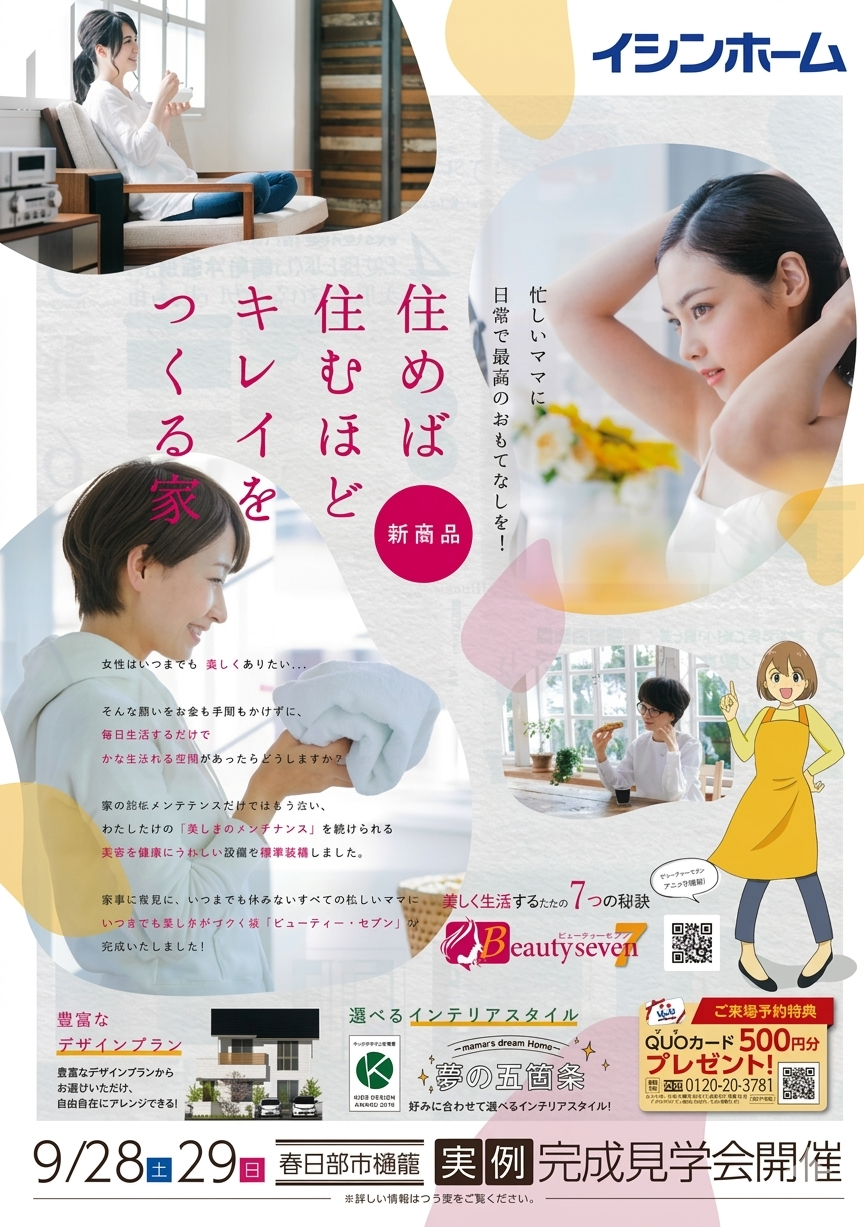 チラシ内容:完成見学会のご案内・間取り・日用品プレゼント・案内図