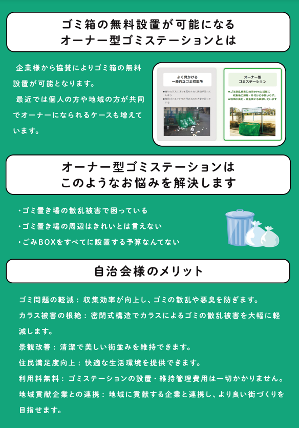 チラシ内容:無料ゴミステーション設置のご案内