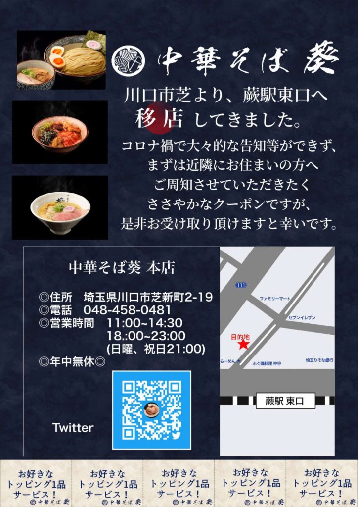 タグ: 川口市, A4印刷, ラーメン店 集客, 集客チラシ, ポスティング 川口市, ポスティング 印刷 川口市, チラシ印刷 川口市, ラーメン店, ラーメン店 広告, ラーメン店 チラシ, ポスティング ラーメン店, ポスティング単価 川口市, 中華そば葵, 埼玉県川口市芝新町2-19, 0484580481